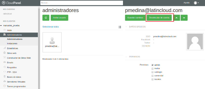 Con estos pasos podrás borrar un usuario administrador de tu Cloud Panel.